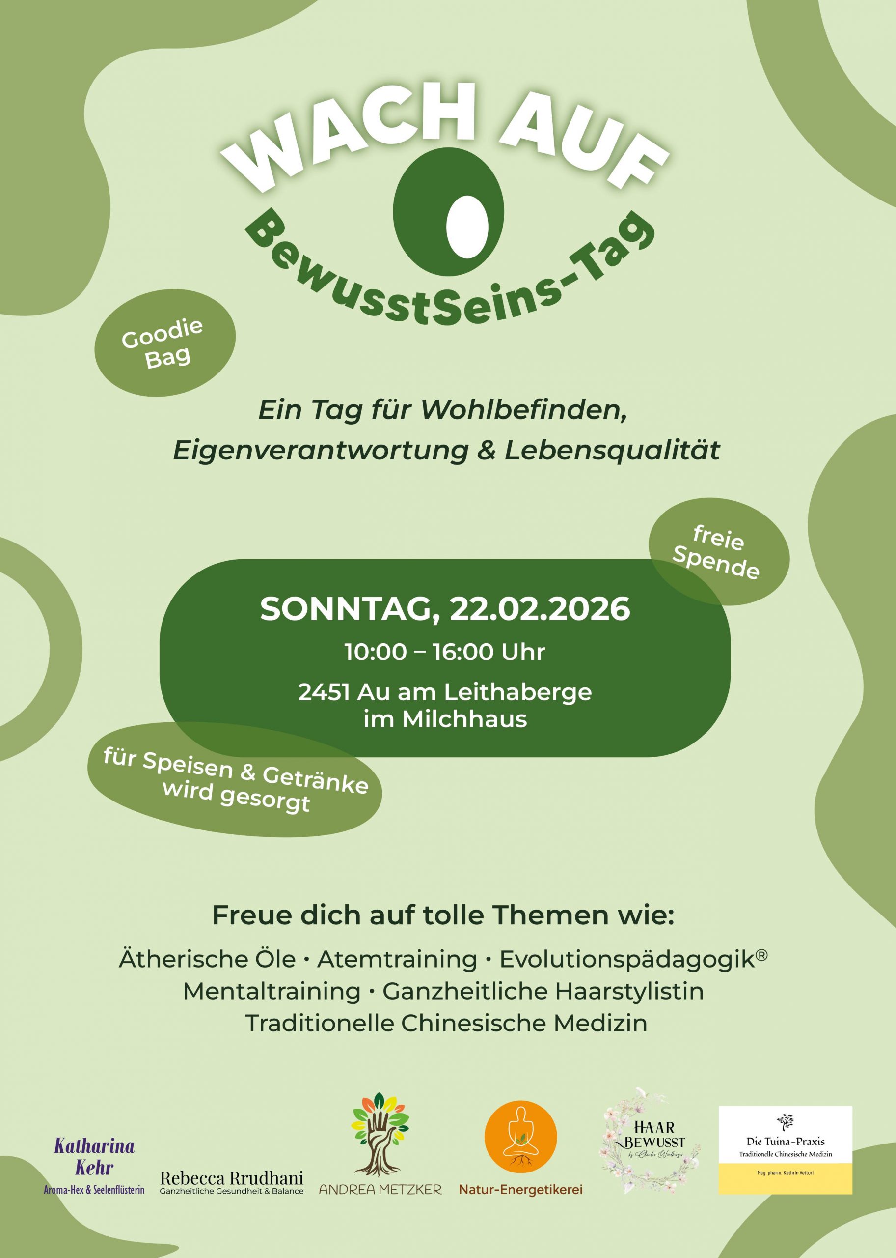 Am Sonntag, 22. Februar 2026, erwartet dich im Milchhaus in 2451 Au am Leithaberge ein inspirierender Tag voller Impulse rund um ganzheitliche Gesundheit, Achtsamkeit und persönliche Entwicklung.