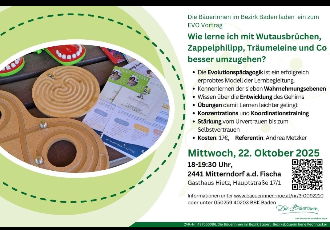 Im Rahmen des Bildungsprogrammes der Bäuerinnen halte ich einen Vortrag zur Evolutionspädagogik und ihrer Bedeutung für Kinder, Jugendliche und Erwachsene ab.